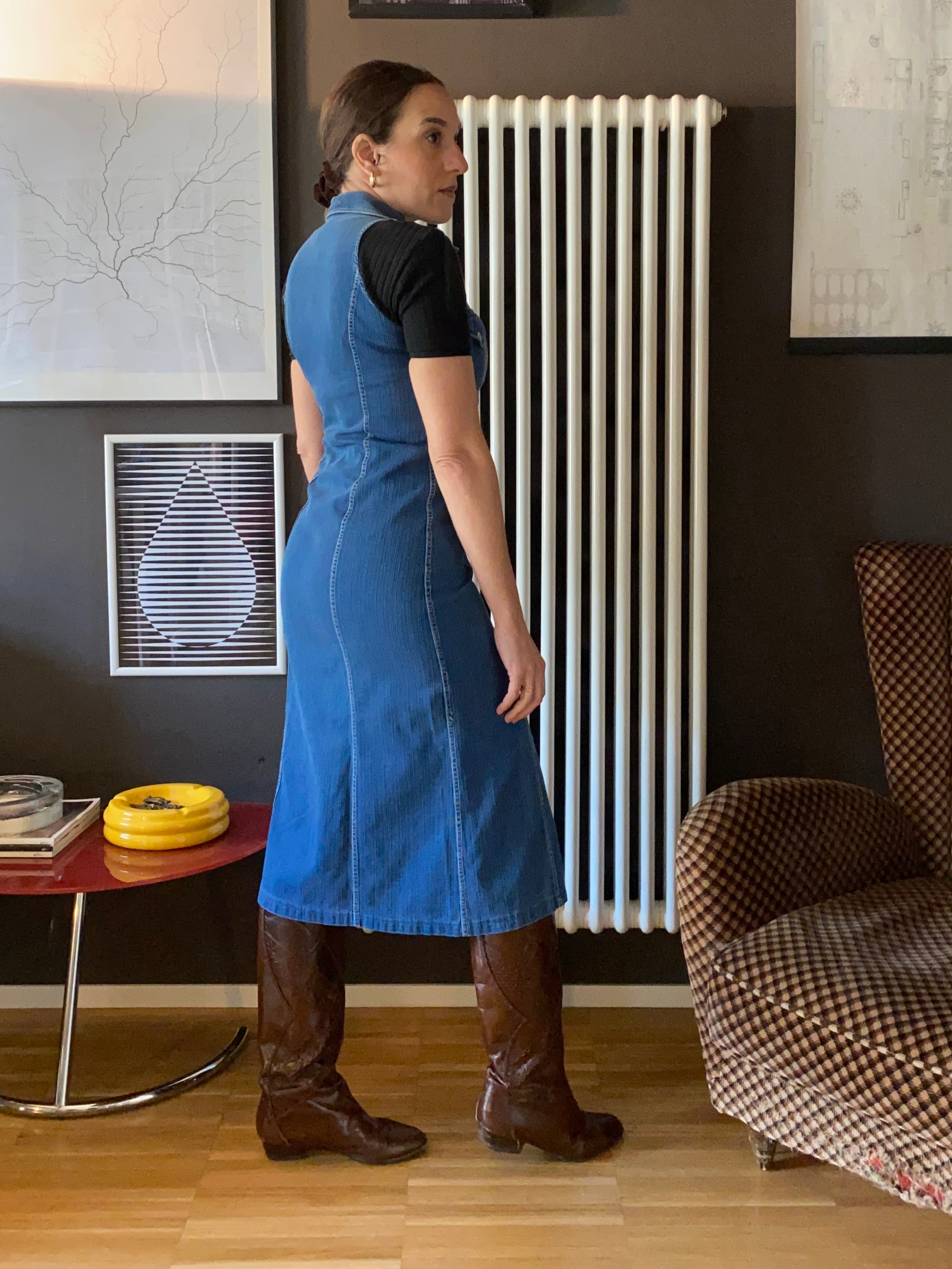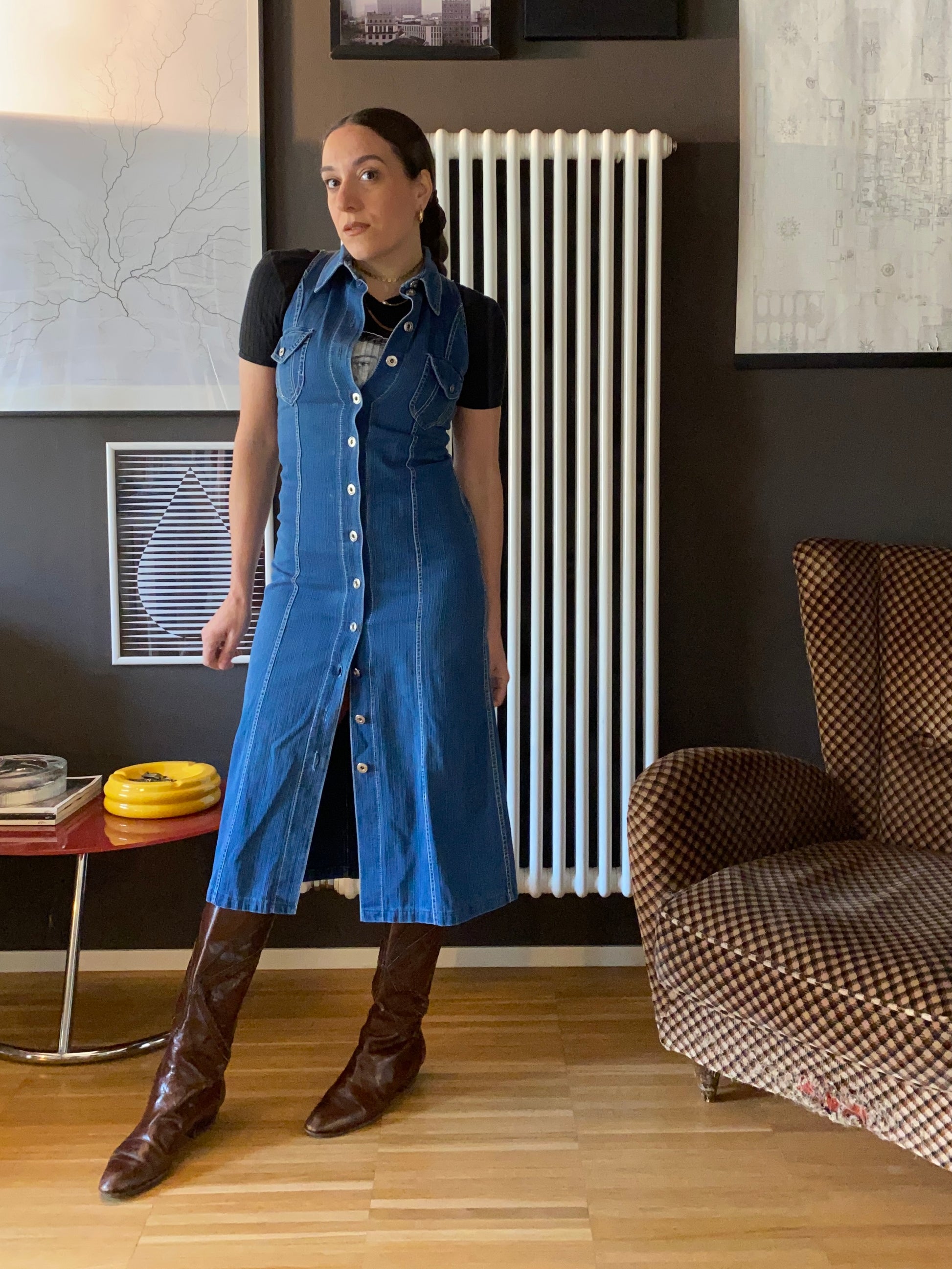 Petto 43 cm, punto vita 37 cm, fianchi 44 cm, lunghezza 110 cm