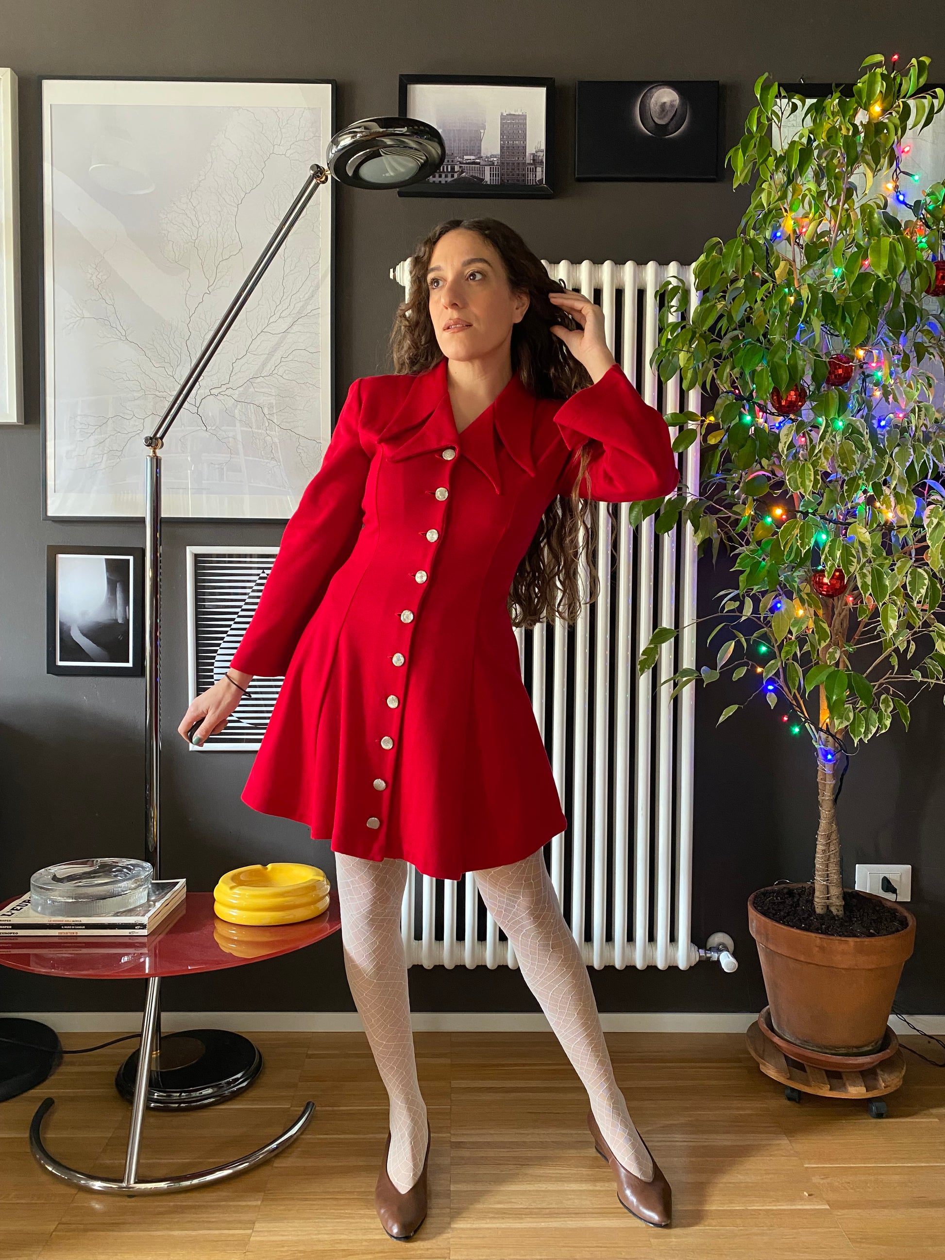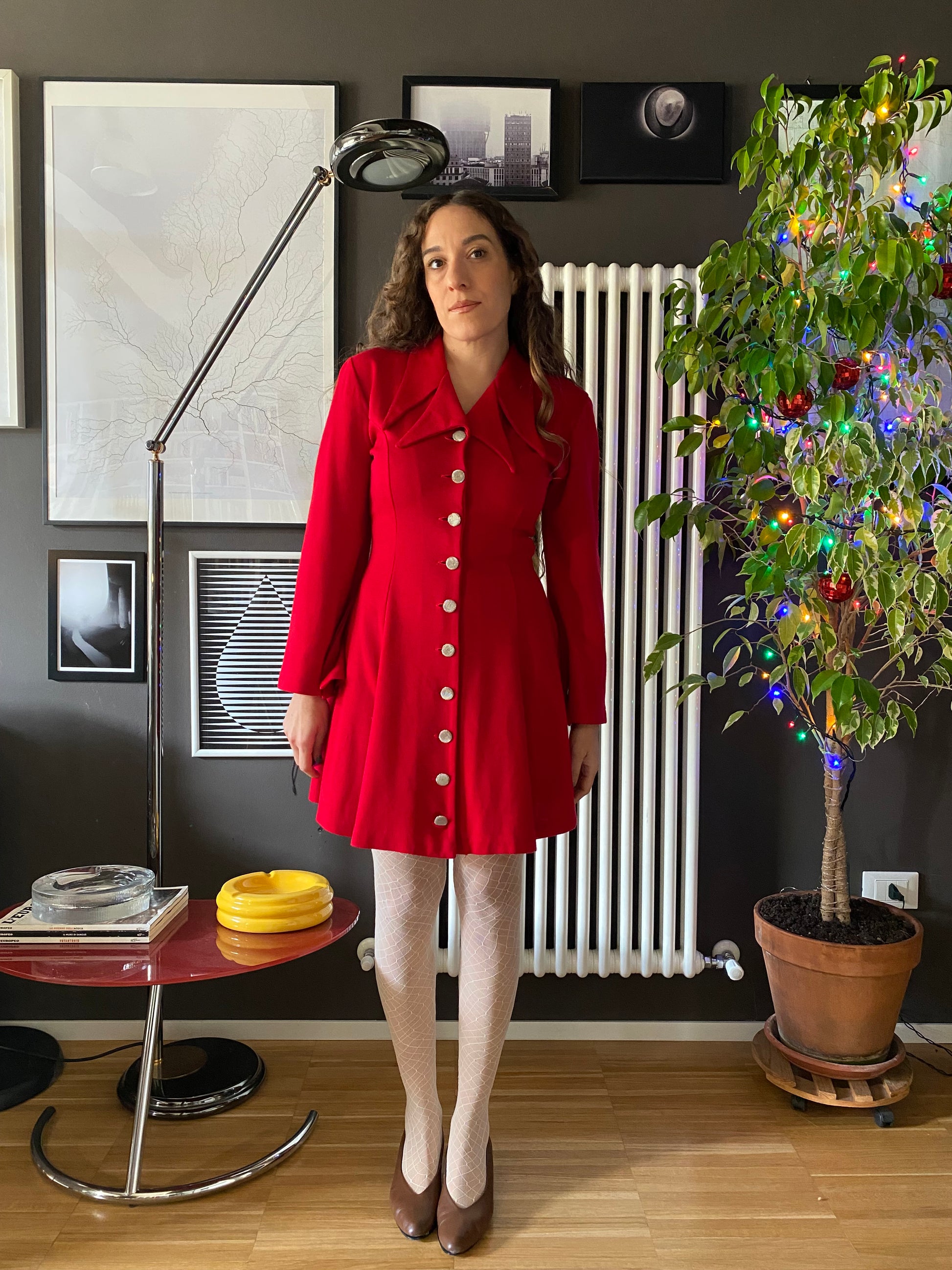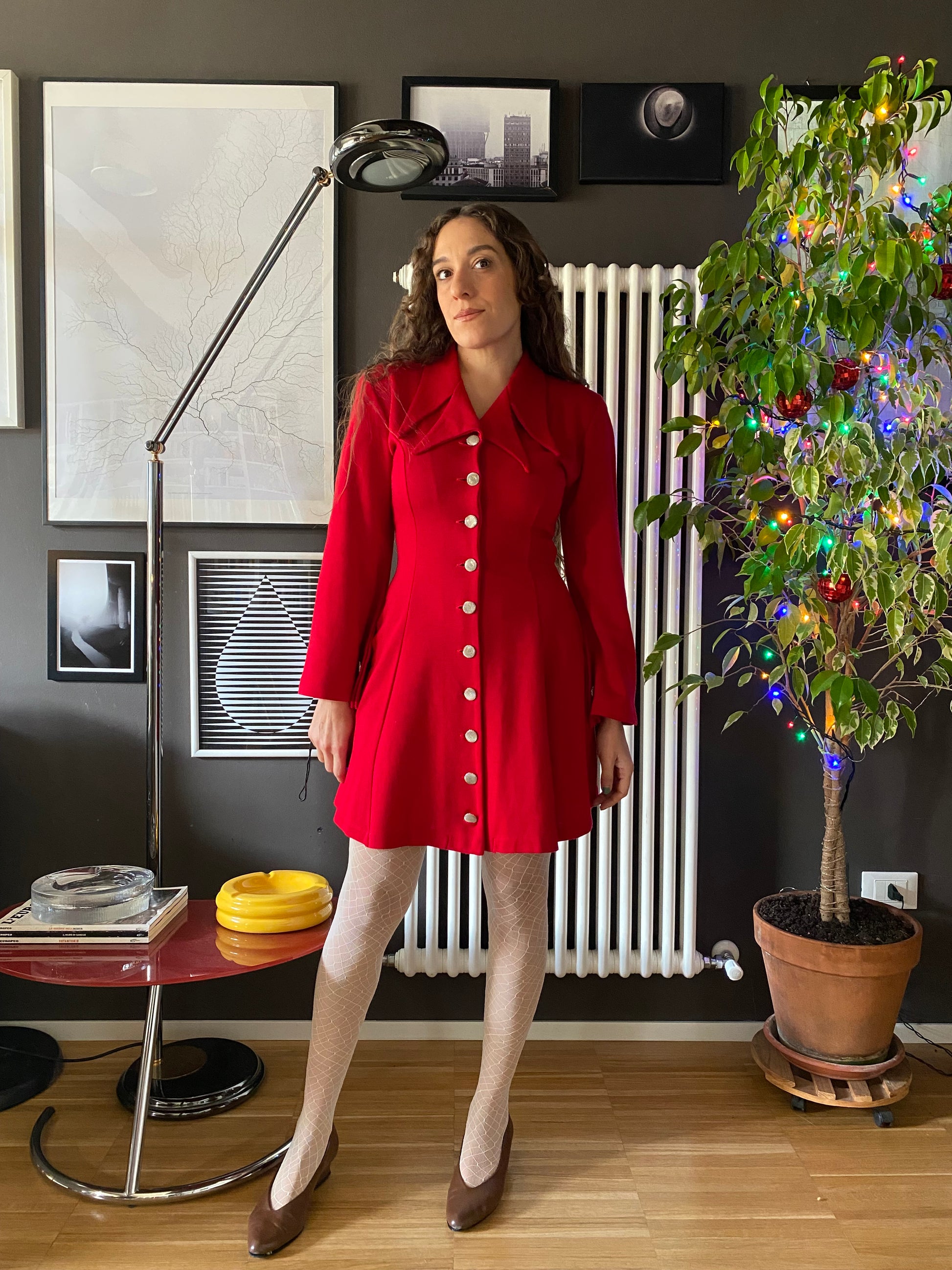 Meraviglioso abito anni 70, con gonna mini a trapezio.