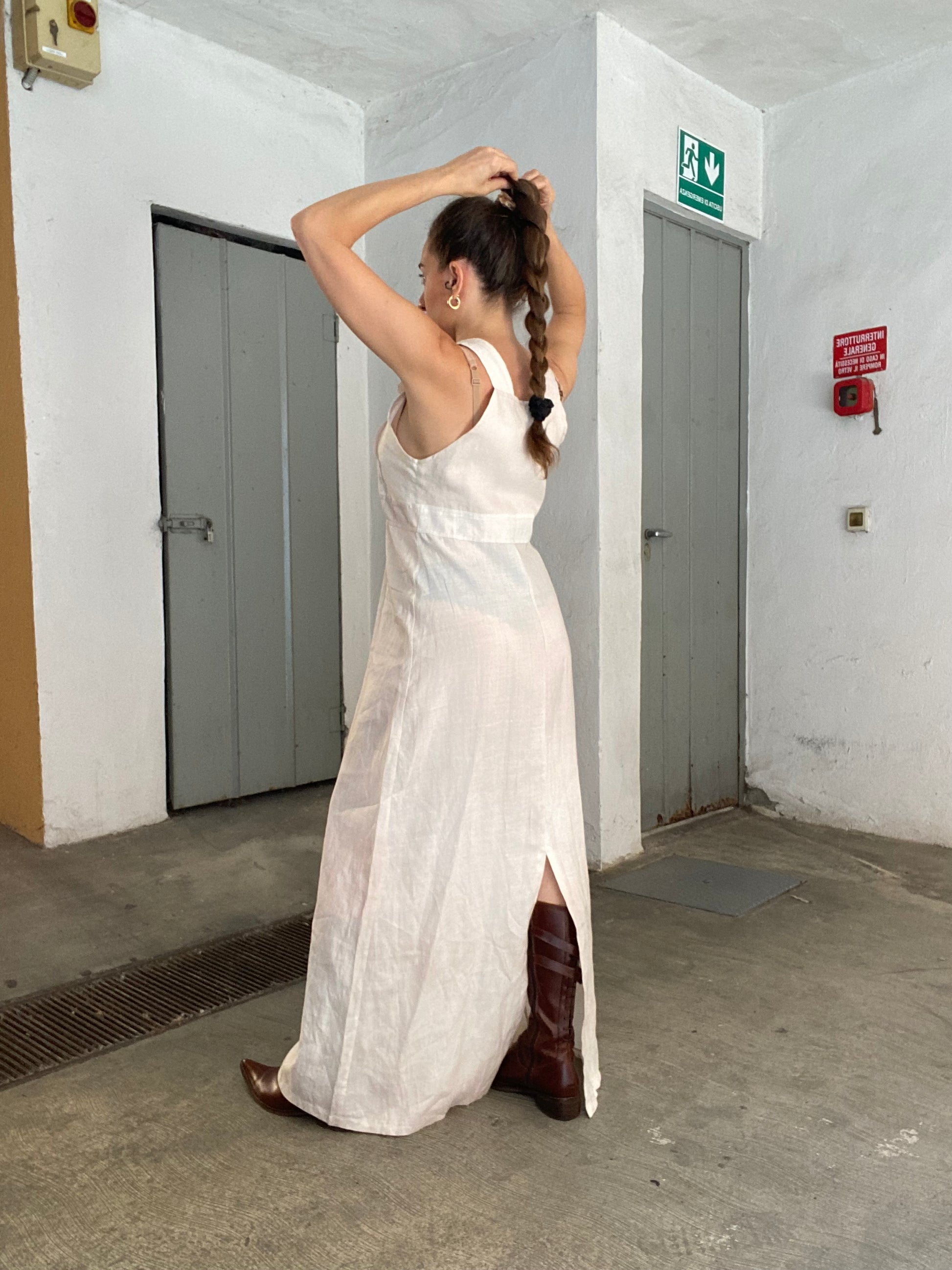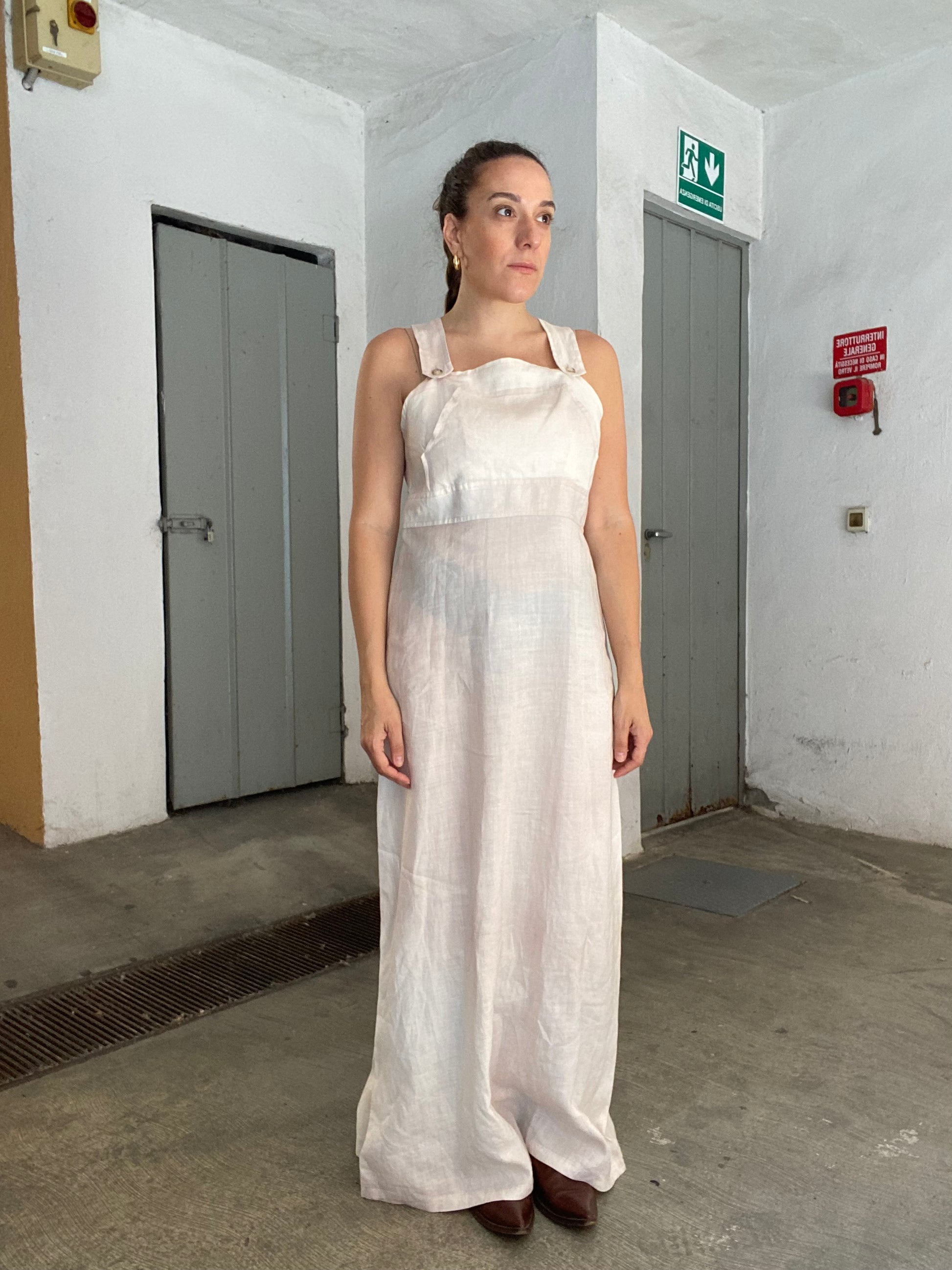 Abito maxi/ salopette con gonna in lino