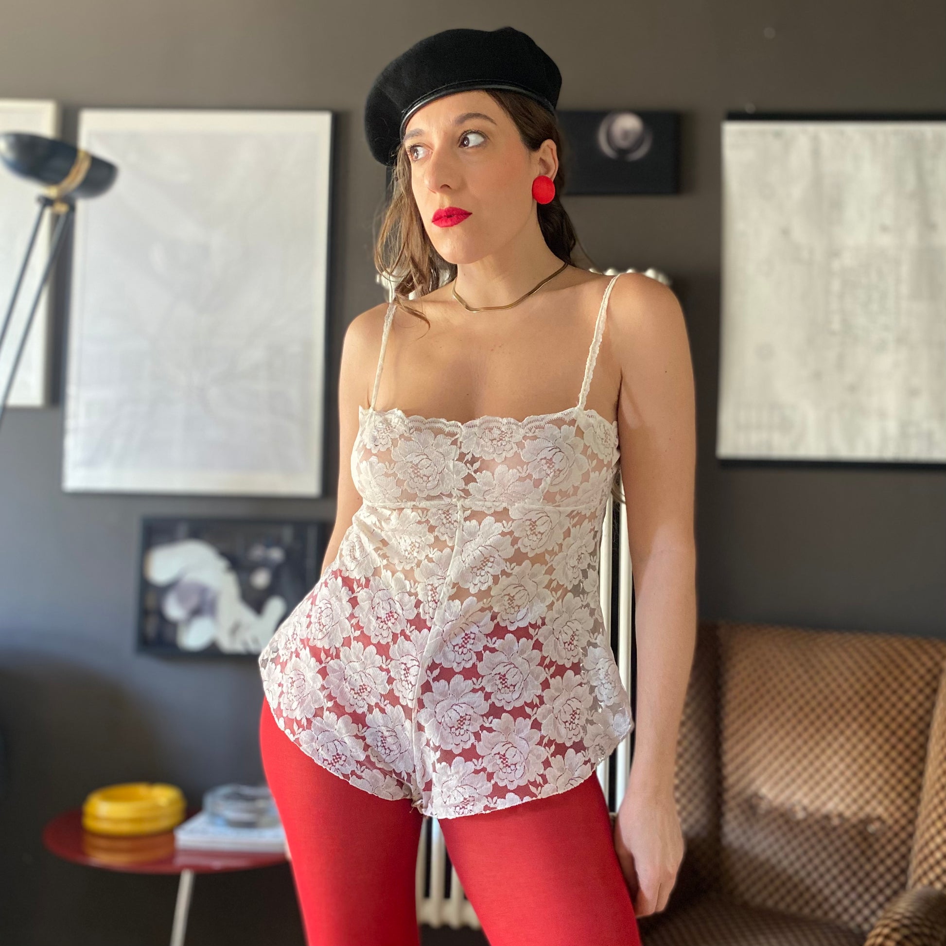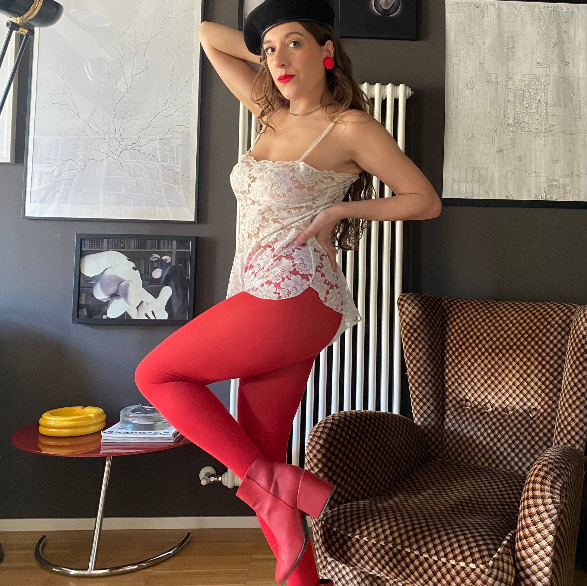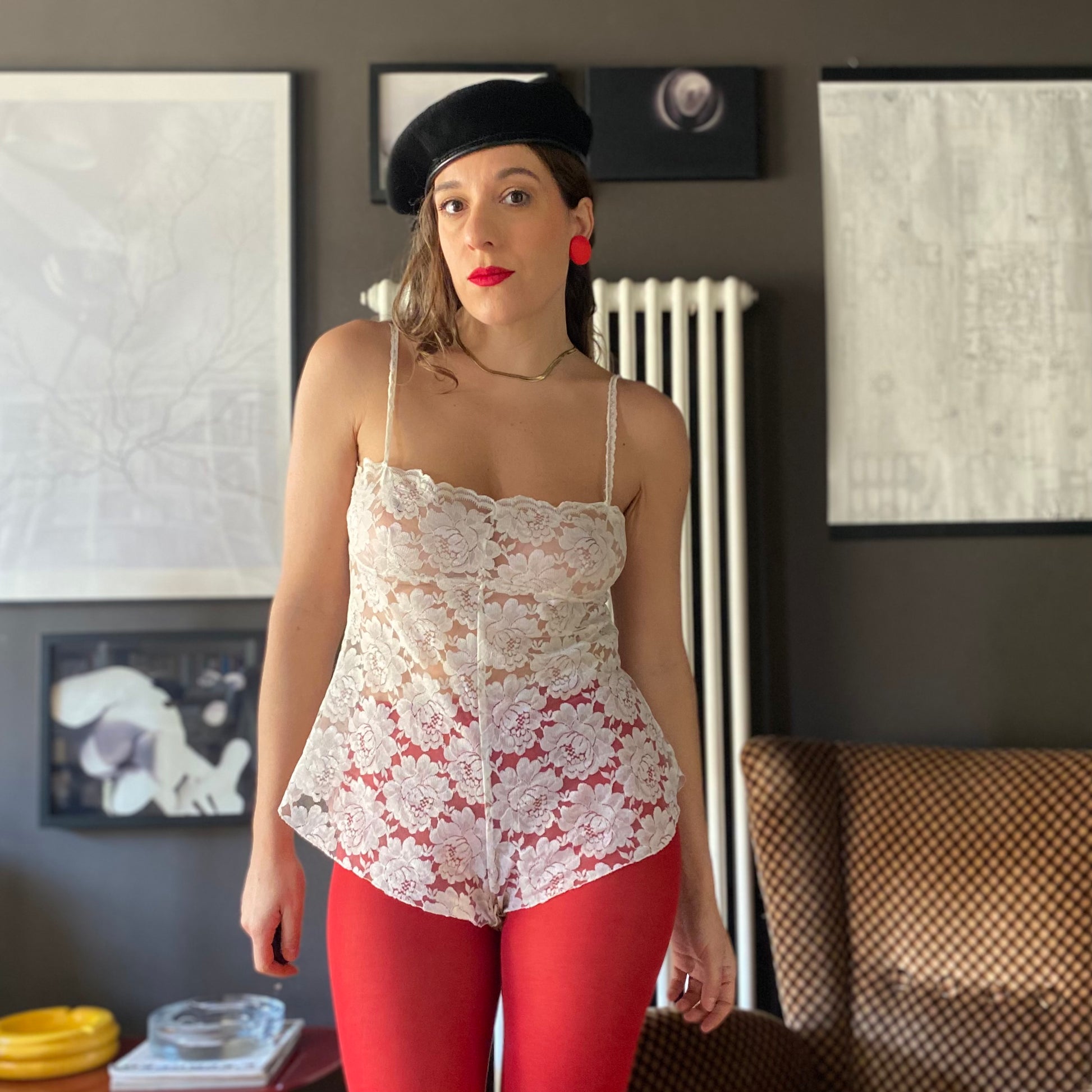 Modello culotte che io ho indossato a mo' di jumpsuite con collant coprenti rossi.