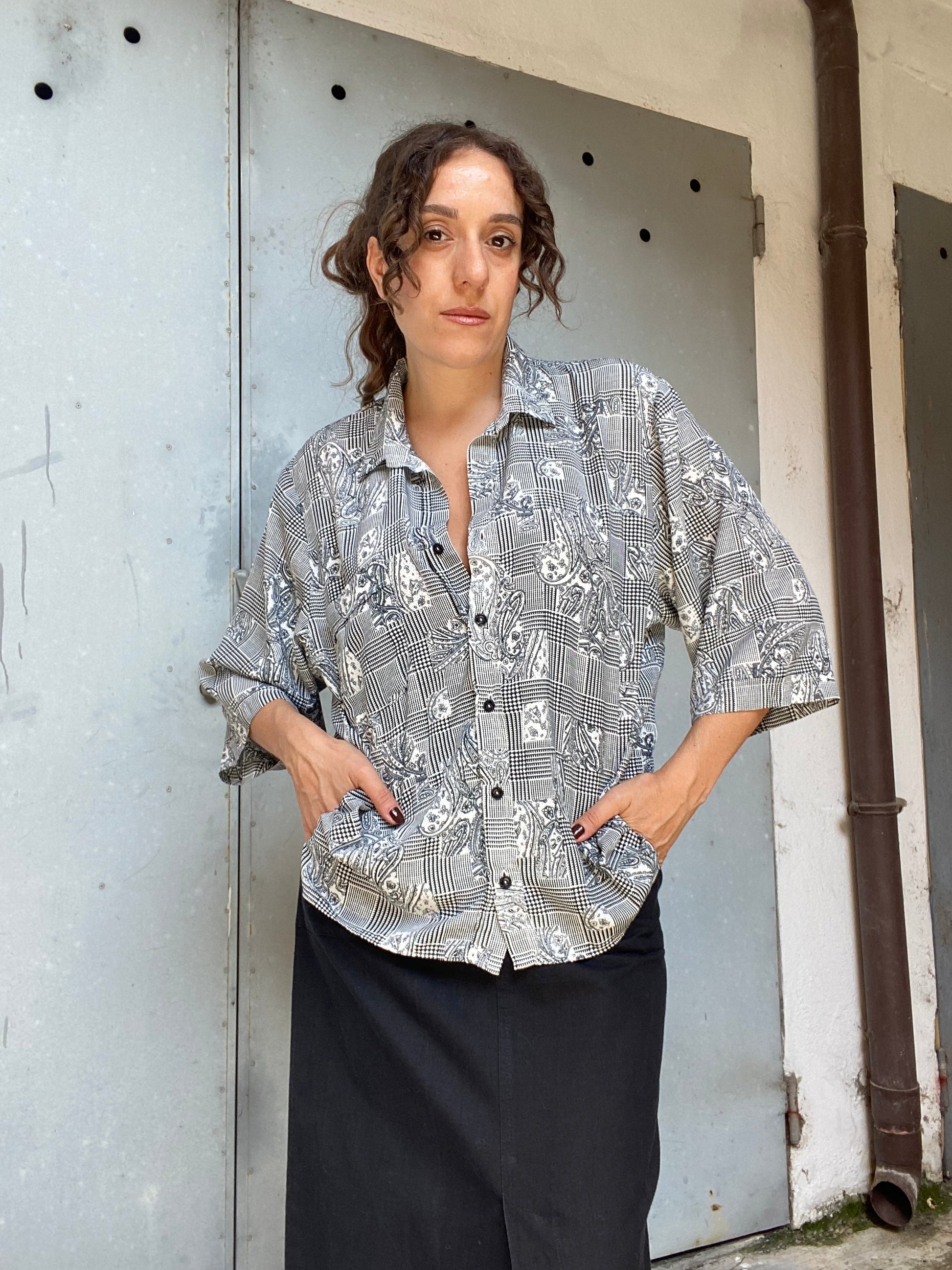 Camicia femminile, fantasia pied de poule alternata a motivi paisley.