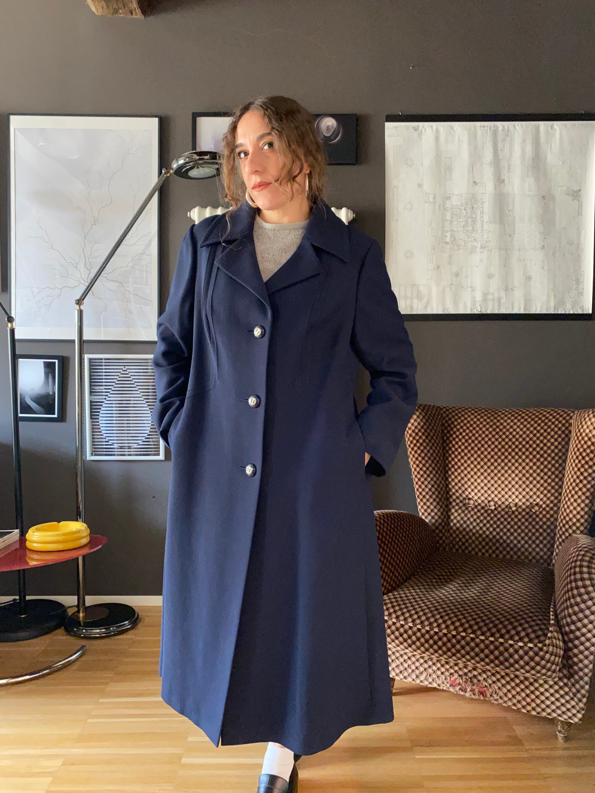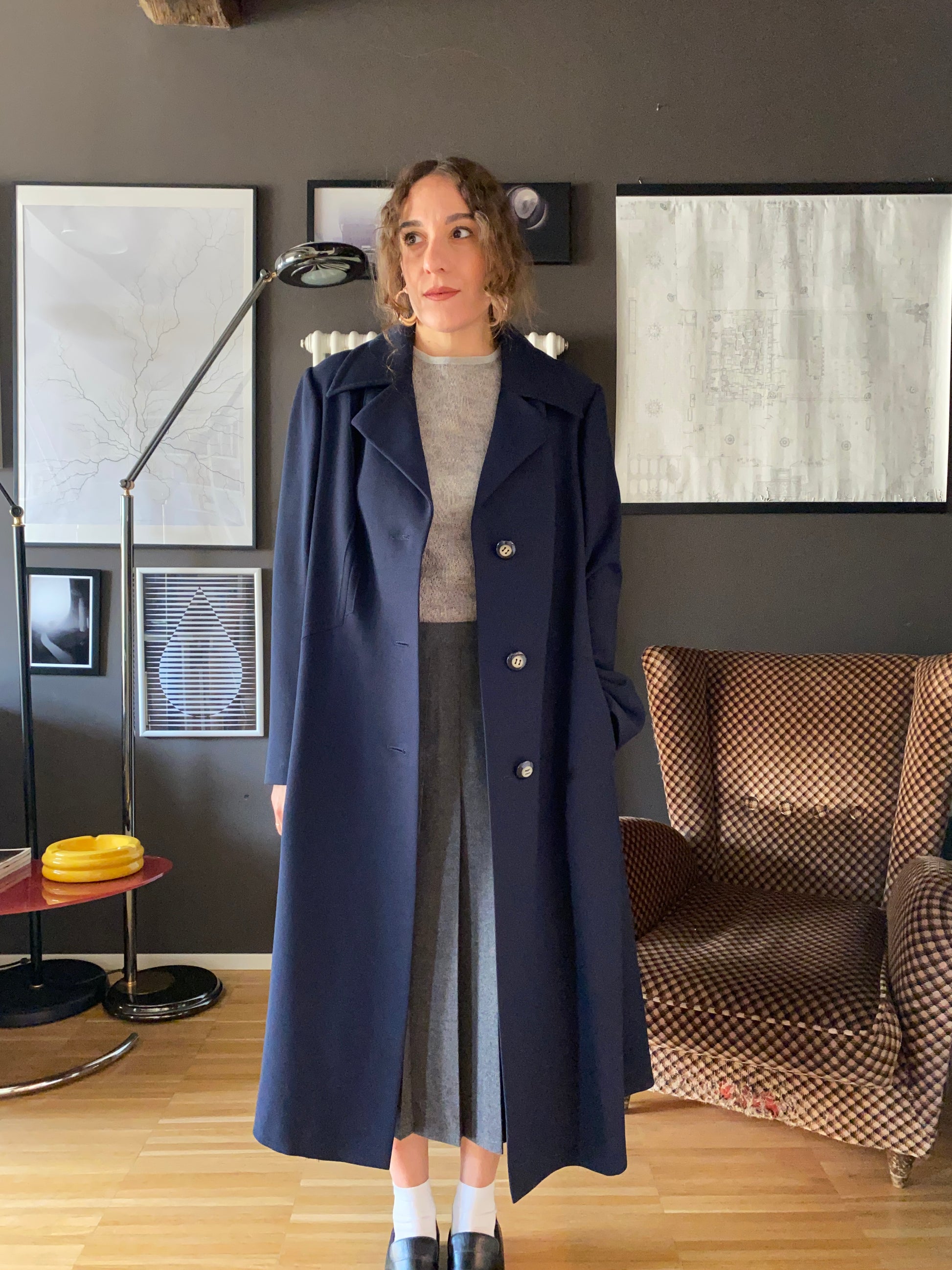 Belli i dettagli dei bottoni grandi e bicolor e delle cuciture che seguono la silhouette.