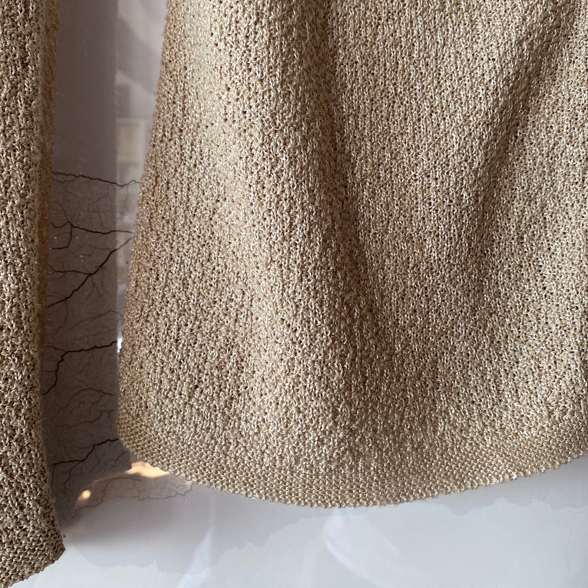 Manica lunga e lavorazione a maglia con punto uncinetto. Tipico cardigan anni 2000 si stringe sul seno e sul punto vita per allargarsi di nuovo sui fianchi.