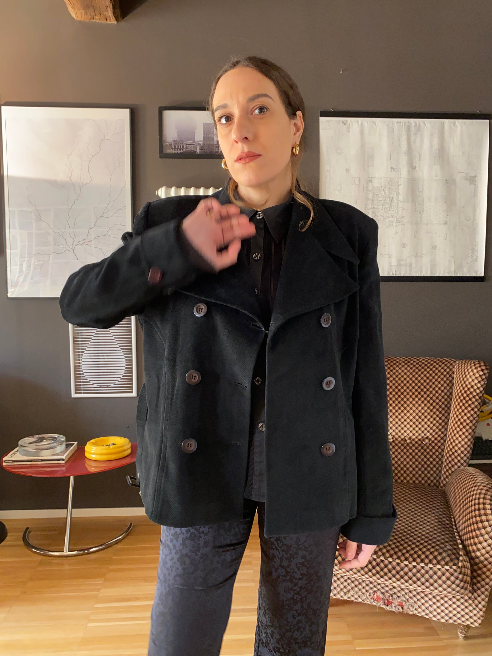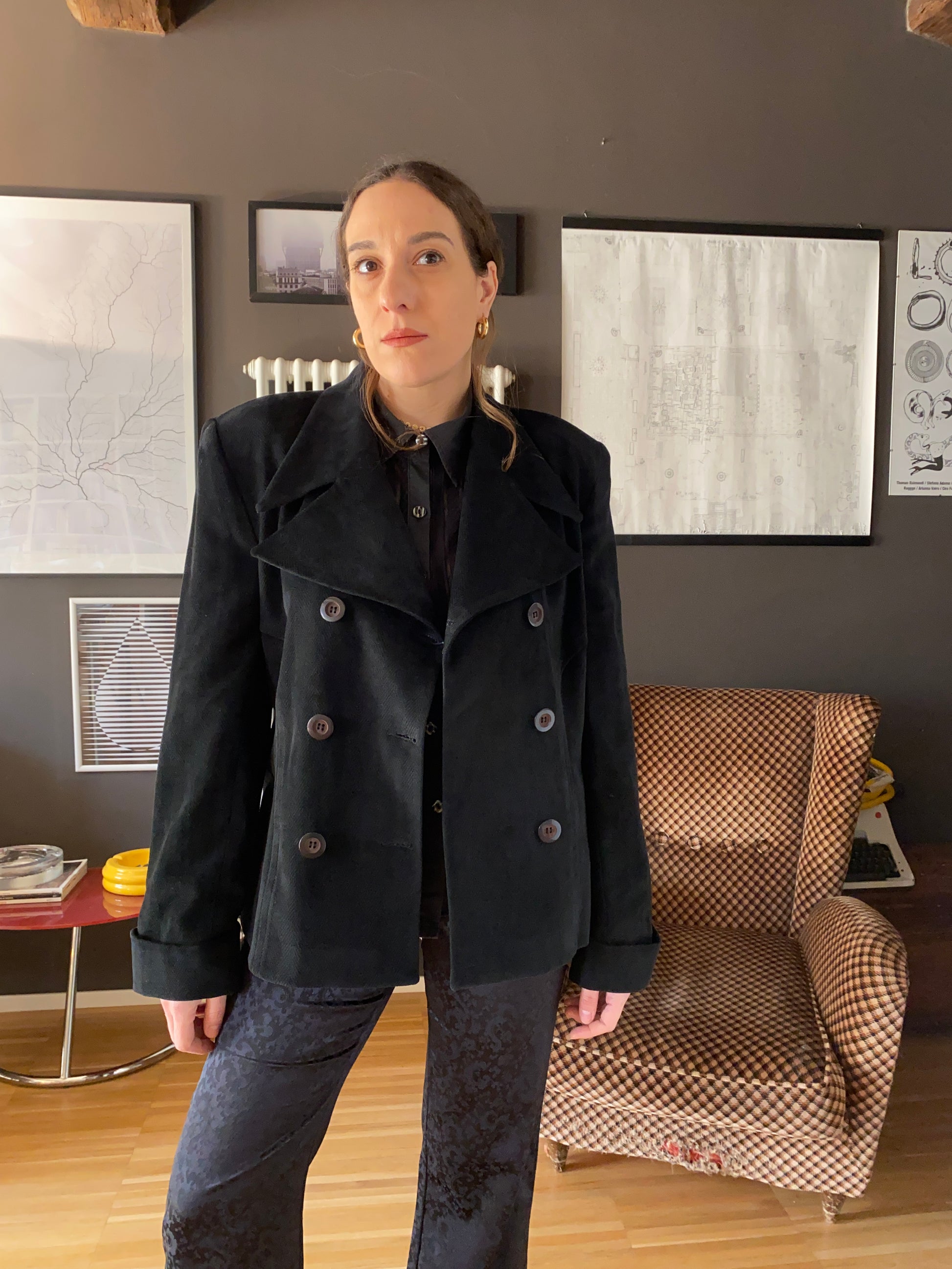 Meravigliosa giacca caban con ampio colletto, anni 90 fondo di magazzino, vintage nuovo con cartellino.