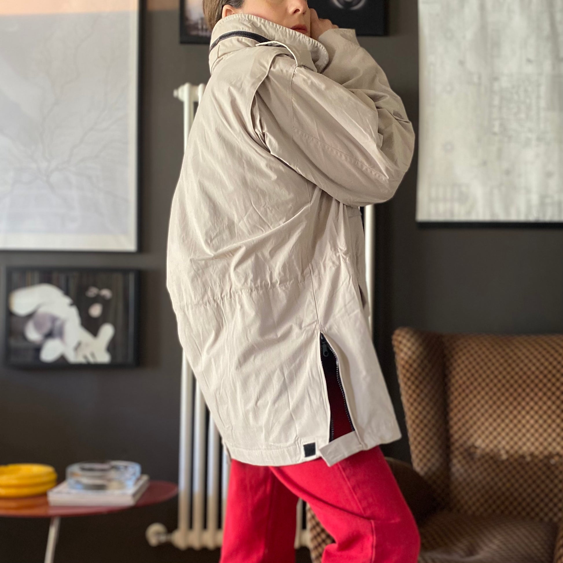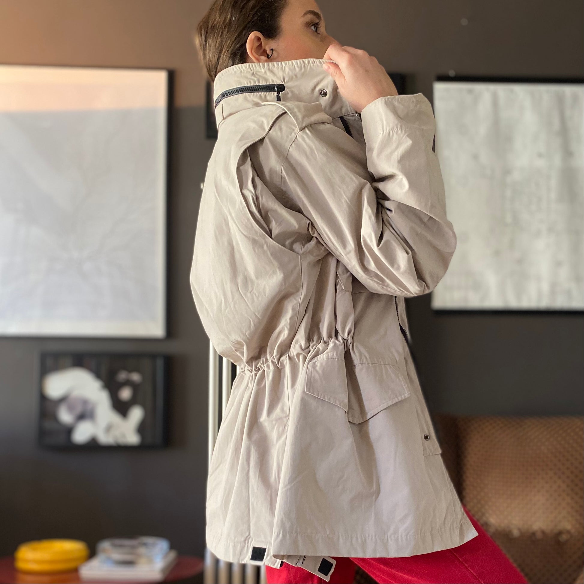 Di un bel color beige freddo la giacca è ricca di dettagli.