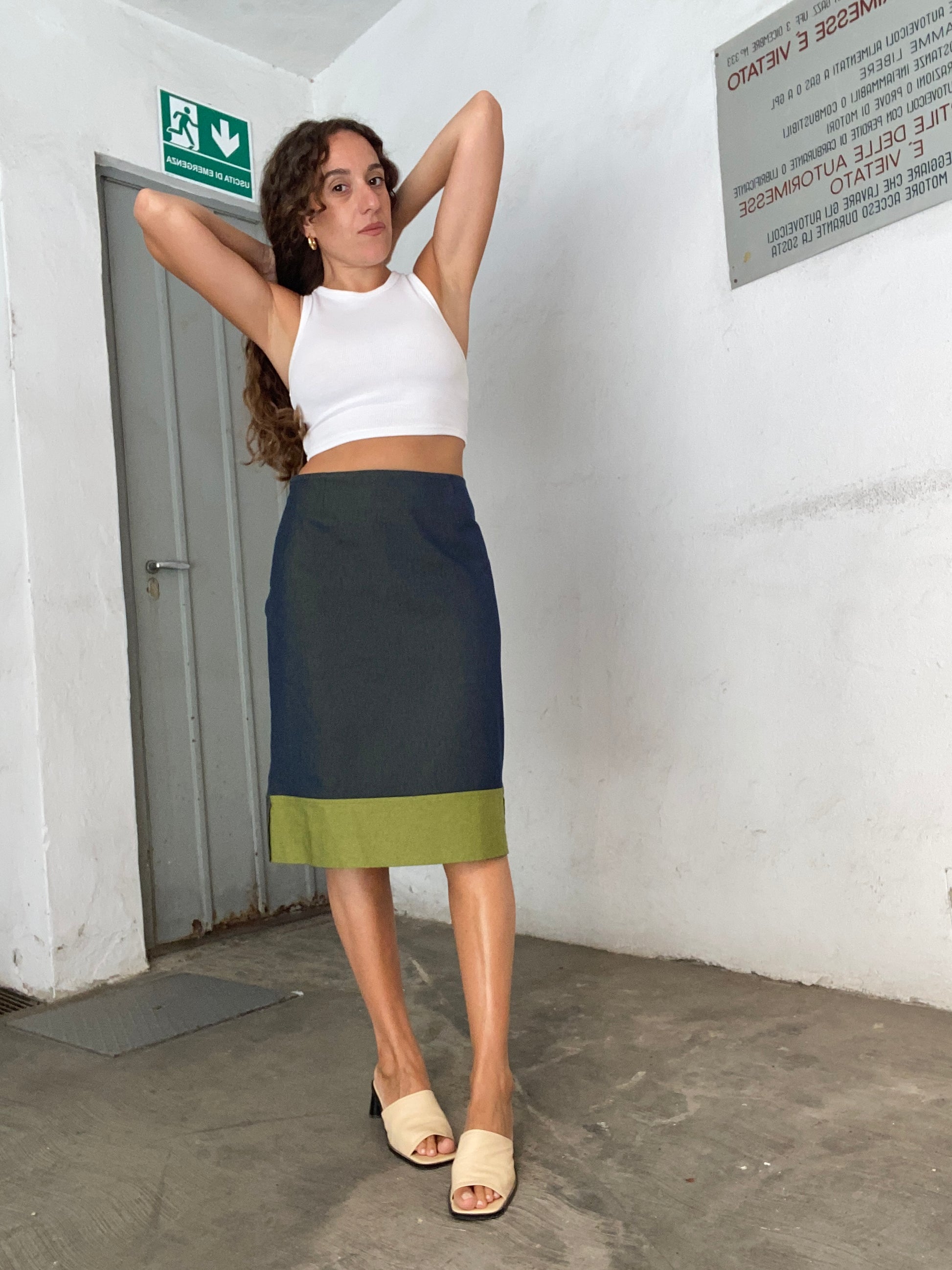 π Gonna in jeans anni 2000, lavaggio scuro con riflessi verdi πΏ