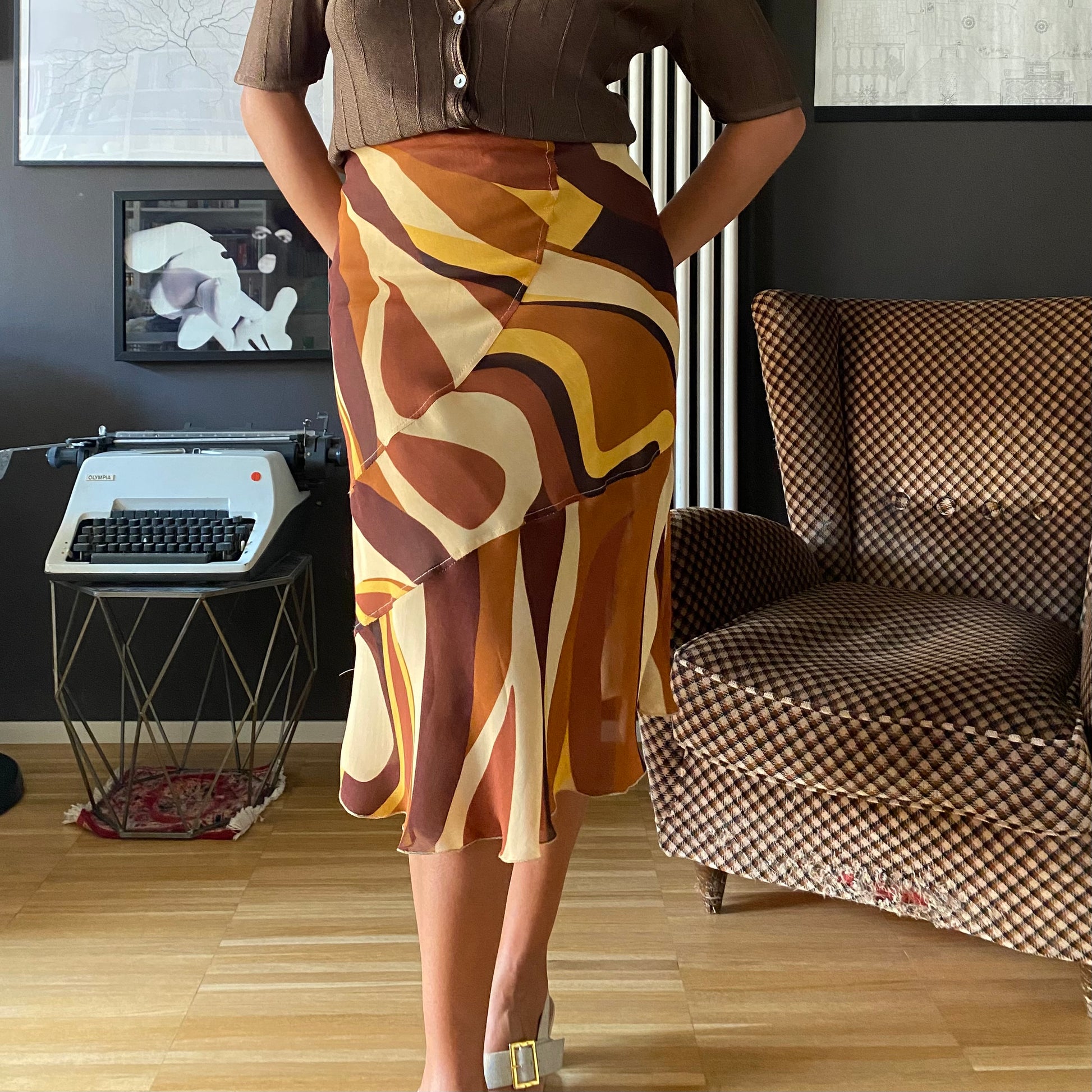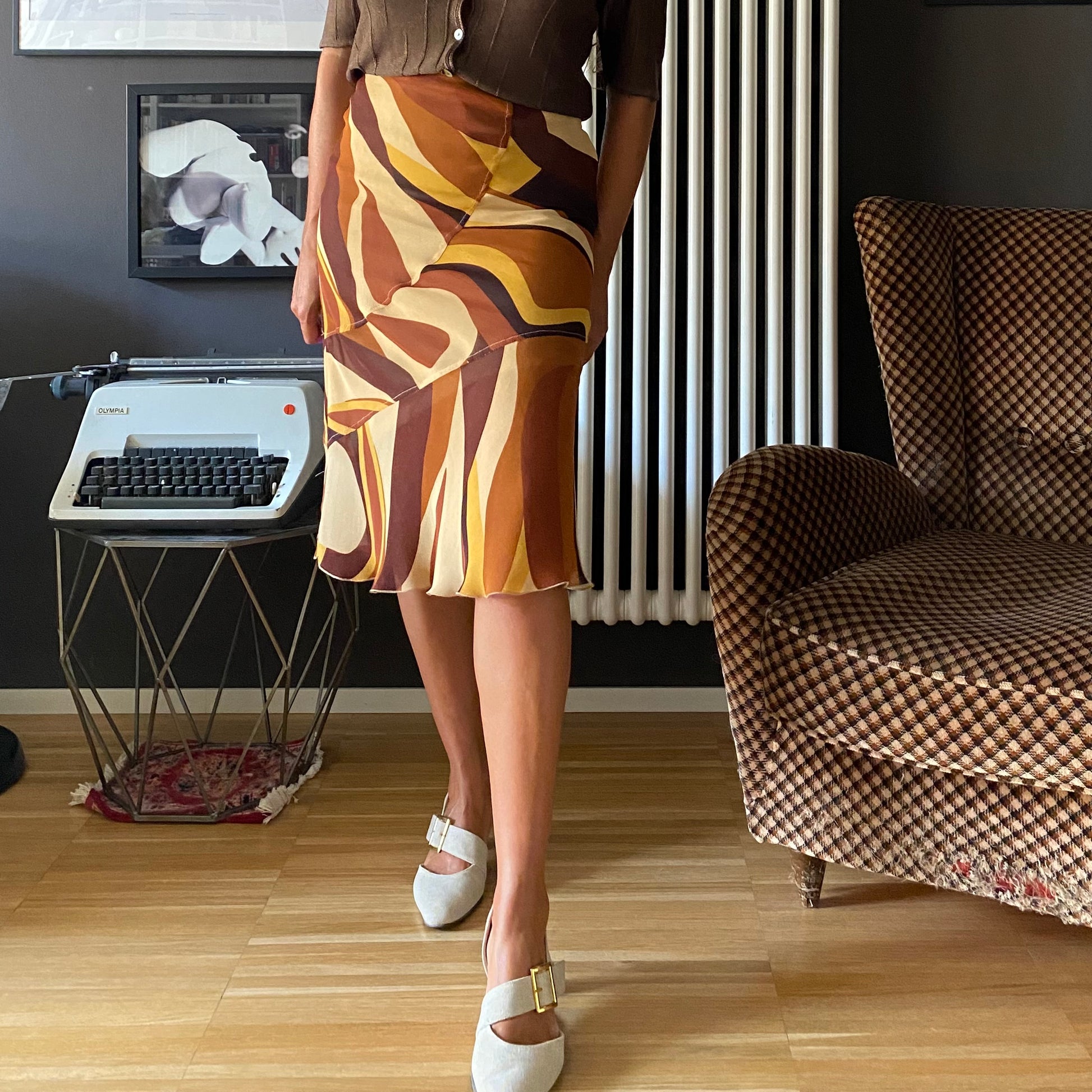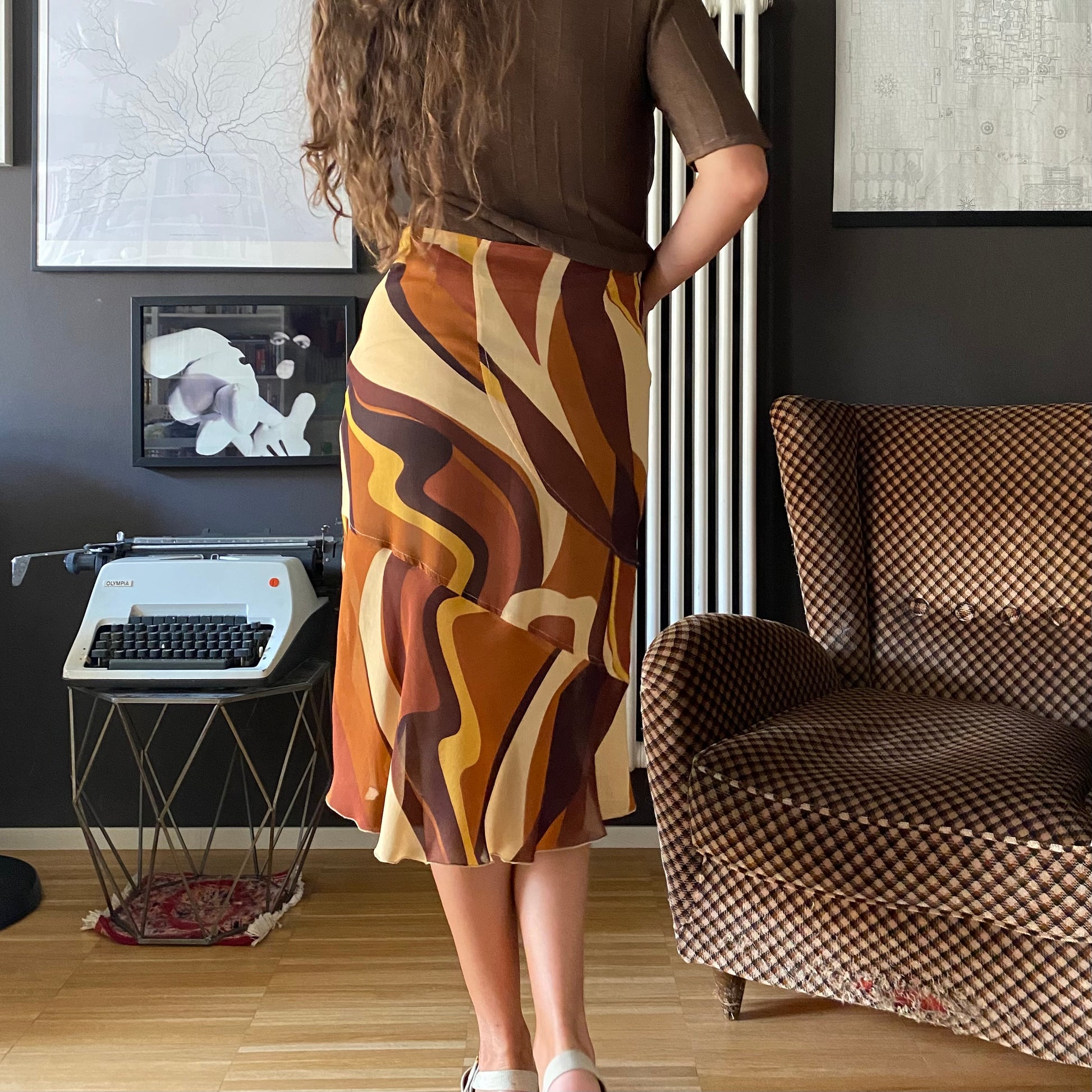 Gonna optical anni 2000 dai toni caldi del marrone e del beige.