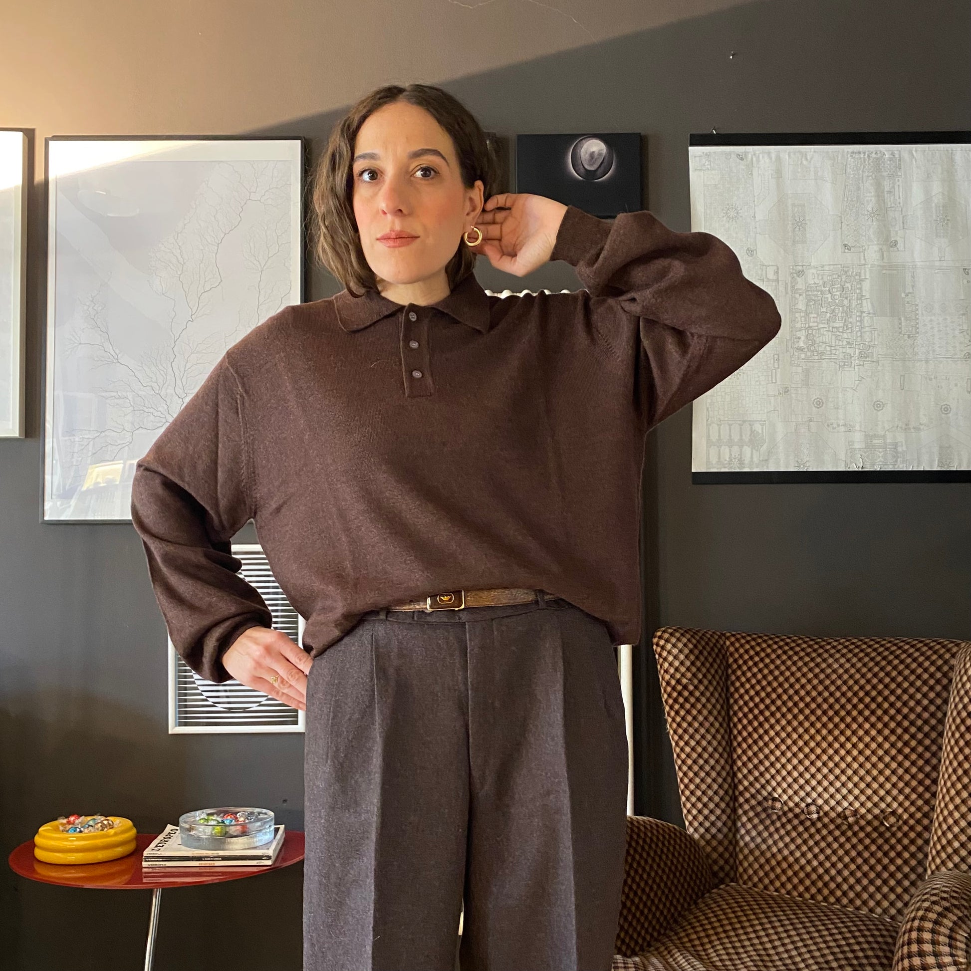 Maglione polo in lana cioccolato