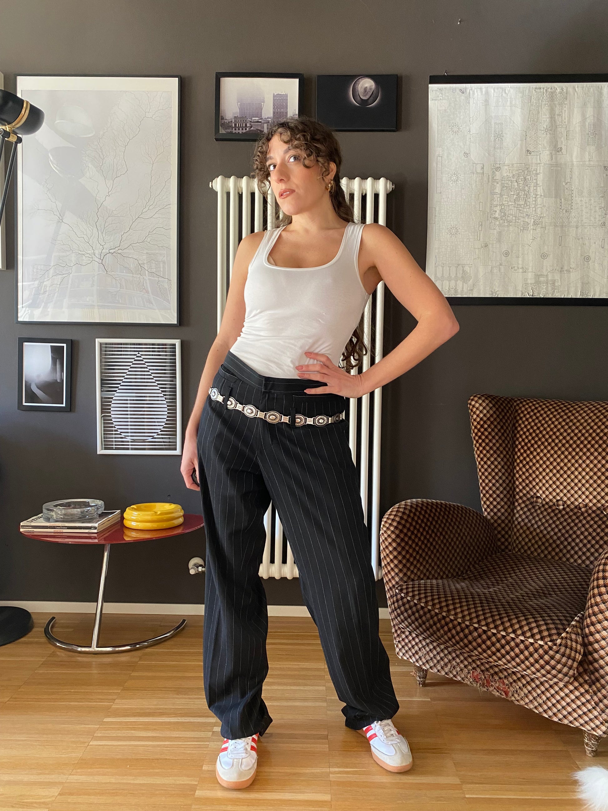 Pantaloni gessati Dolce & Gabbana, in taglia grande, li vedete indossati adattati su una 42.