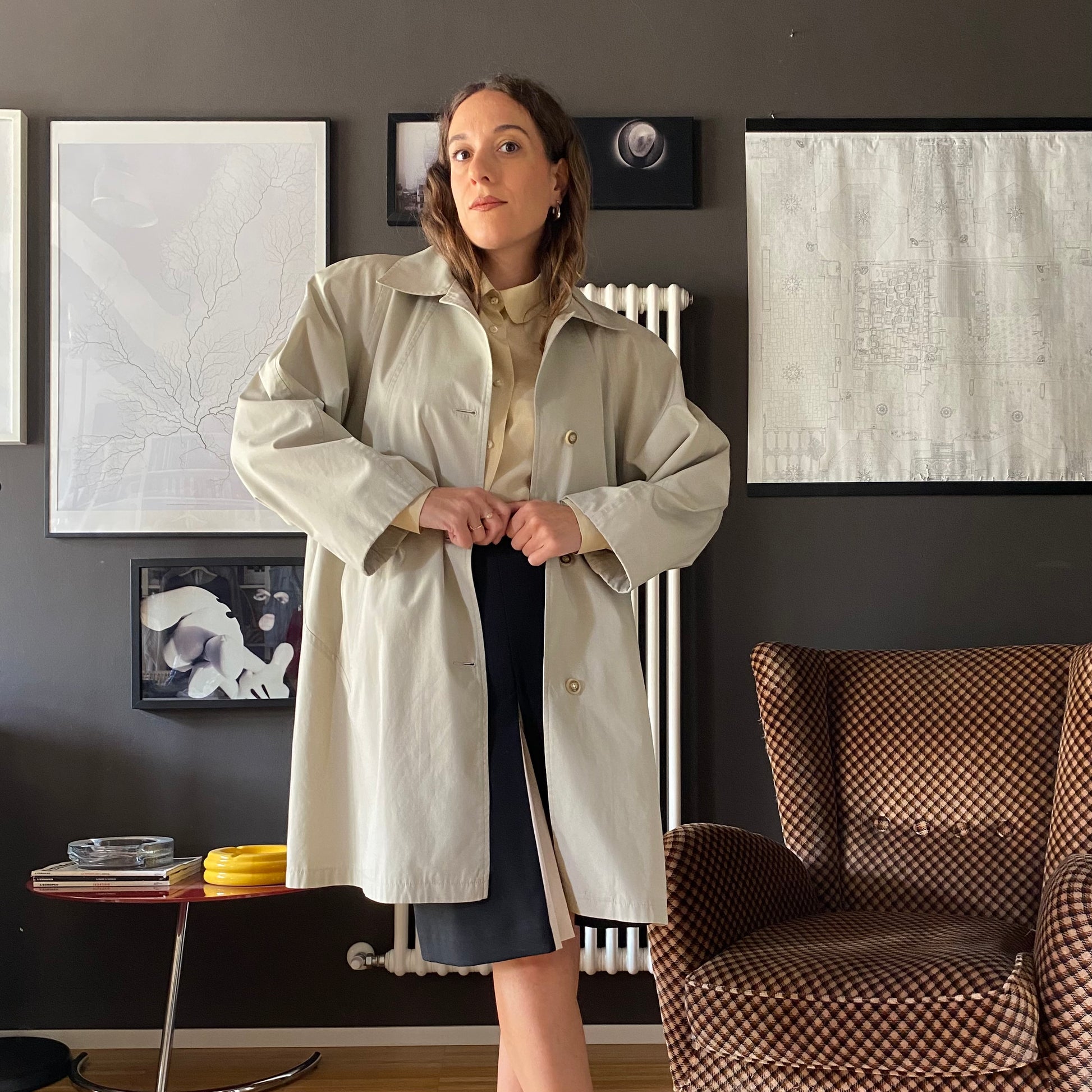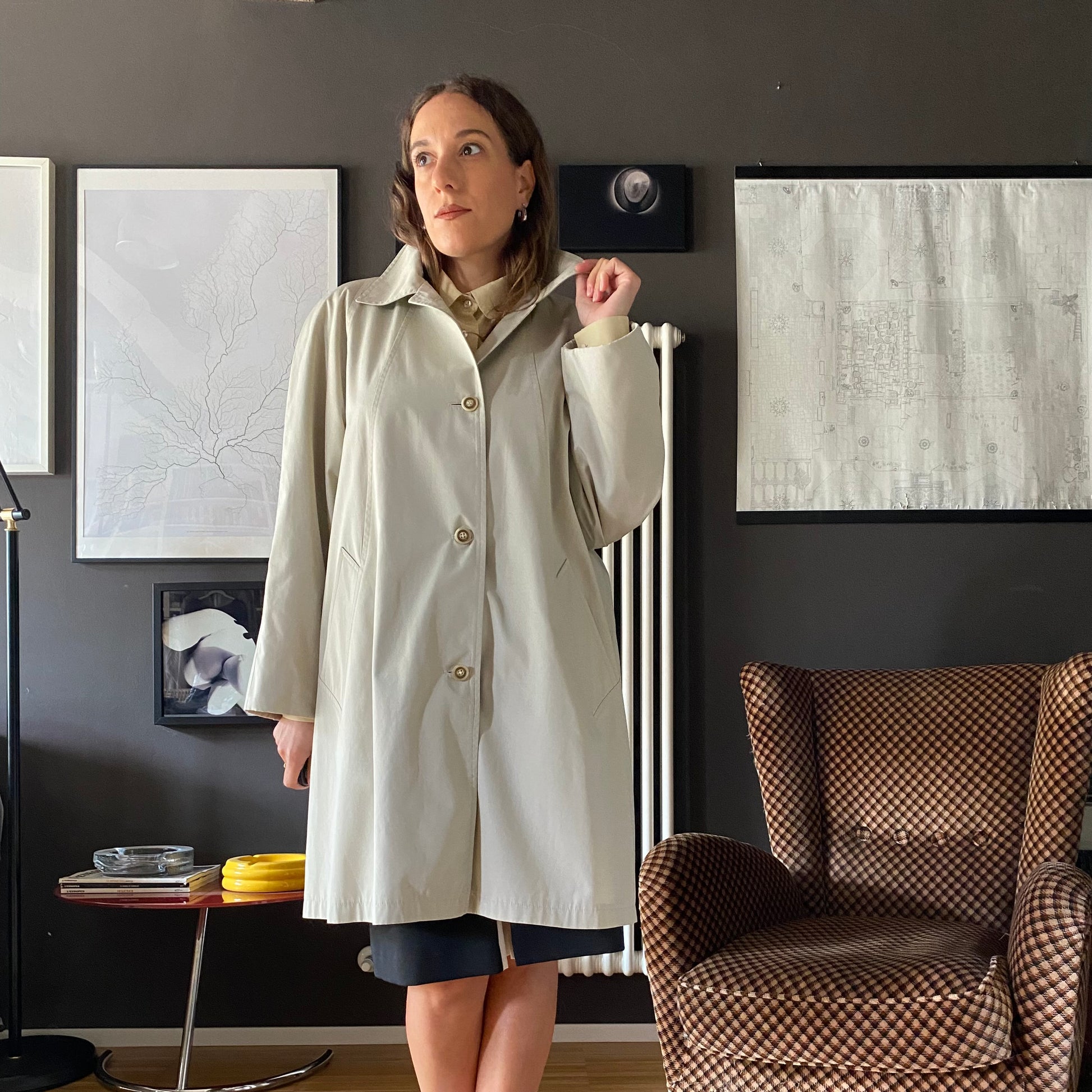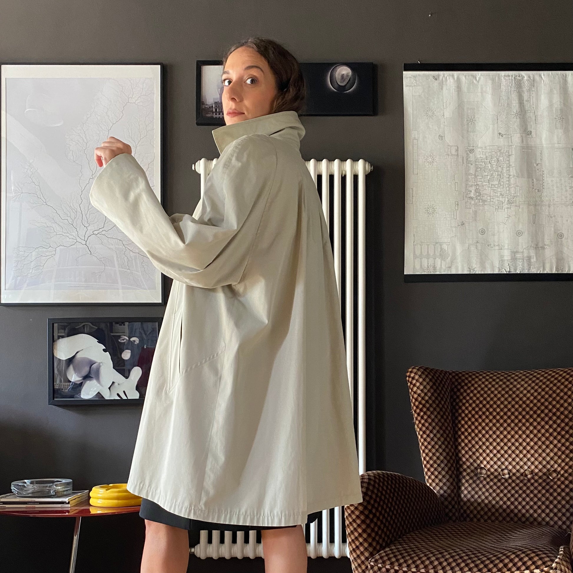 Trench anni 80 con abbottonatura fino al colletto.